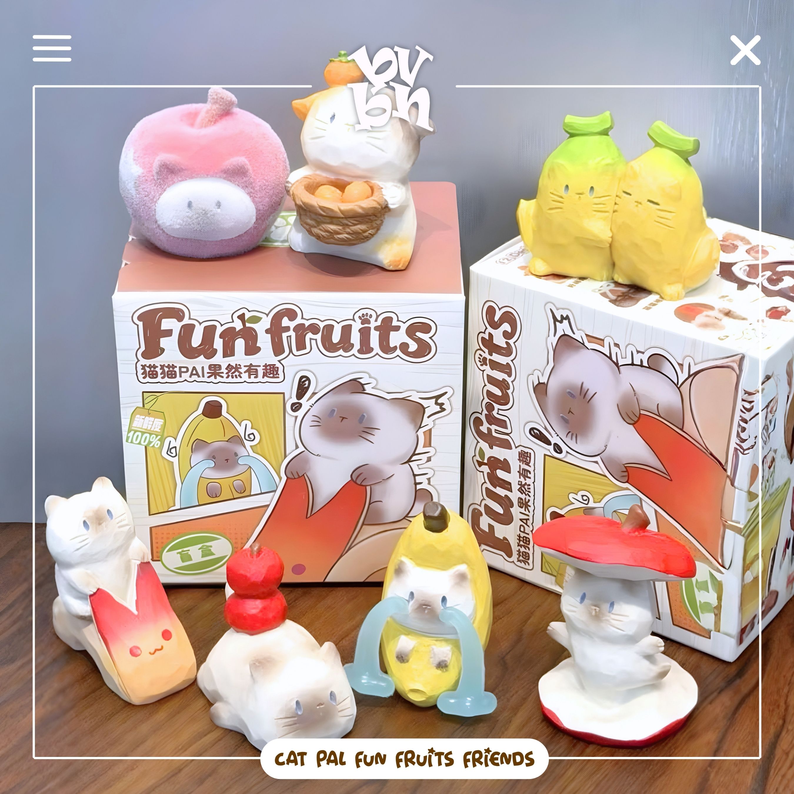 Cat Pal Fun Fruits Friends là series blindbox nổi bật với concept mèo PAL kết hợp trái cây, mang đến tạo hình vui mắt và dễ trưng bày. Mỗi chú mèo được đặt trong một “tình huống nhỏ” khác nhau – từ hoá thân thành trái cây đến những khoảnh khắc sinh hoạt đơn giản, tạo nên cảm giác gần gũi nhưng vẫn rất riêng.